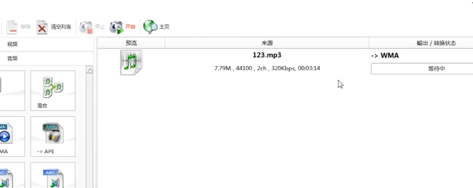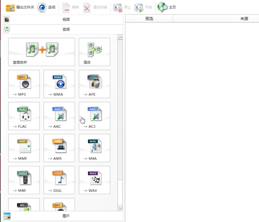 3、然后打开“音频文件”选项,点击选择自己需要转换的一种音频模式,点击选择“音频文件格式”,出现一个音频文件选择界面。
