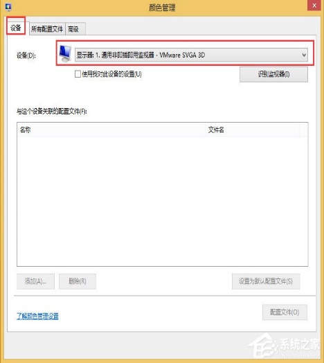 3、可能你安装过显示器的驱动程序,下面的配置文件中会有一个默认的配置文件,勾选“使用我对设备的配置”,删除当前ICC配置;