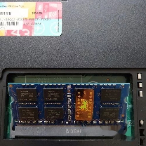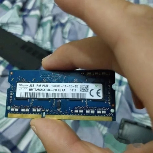 我们可以看到这个内存条嗯是1600赫兹,DDR3L的插槽,4G的一个内存条,那么在换4g之前嗯,我的电脑是2g的,海力士的一个内存条,1600赫兹,DDR3L的插槽