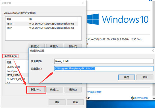变量名填写JAVA_HOME,变量值填写JDK的安装路径,比如小编的安装目录是C:\Program Files\Java\jdk1.8.0_102,填好后点击“确定”。