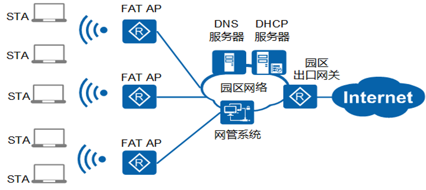 § 胖接入点FAT AP(FAT Access Point):在自治式网络架构中提供STA的无线接入服务,除了提供基本的无线连接功能外,还能提供安全和管理等增强功能。