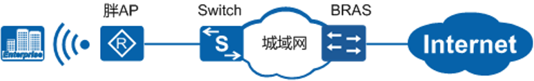自治式架构又称为胖接入点(FAT AP)架构。在该架构下,AP实现所有无线接入功能,不需要AC设备,如图2-5所示。