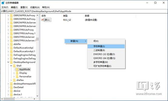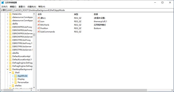三、在新建的 AppMode 项中右侧需要新建四个字符串值 ,分别为: Icon、MUIVerb、Position、SubCommands。
