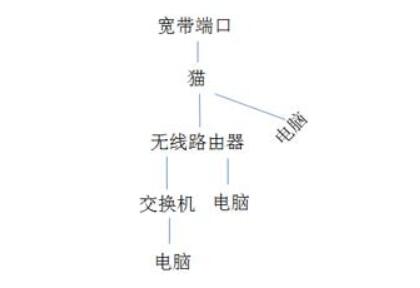 第二种方法:宽带连接-调制解调器-无线路由器-交换机-电脑。也就是说,有的电脑通过了交换机连接,有的电脑直接从无线路由器连接,有的电脑直接从调制解调器连接。