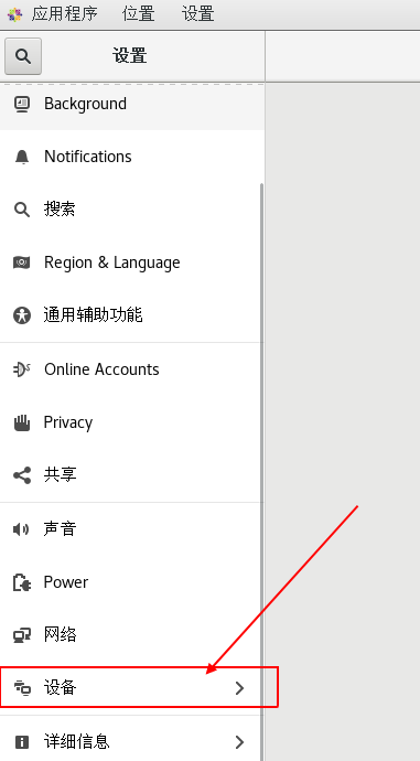 2、单击左上角的 应用程序 -> 系统工具 -> 设置