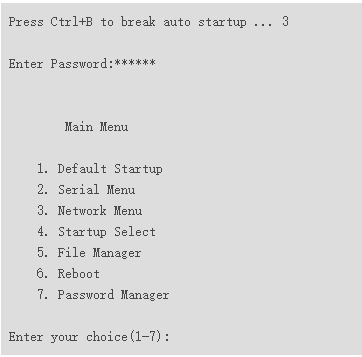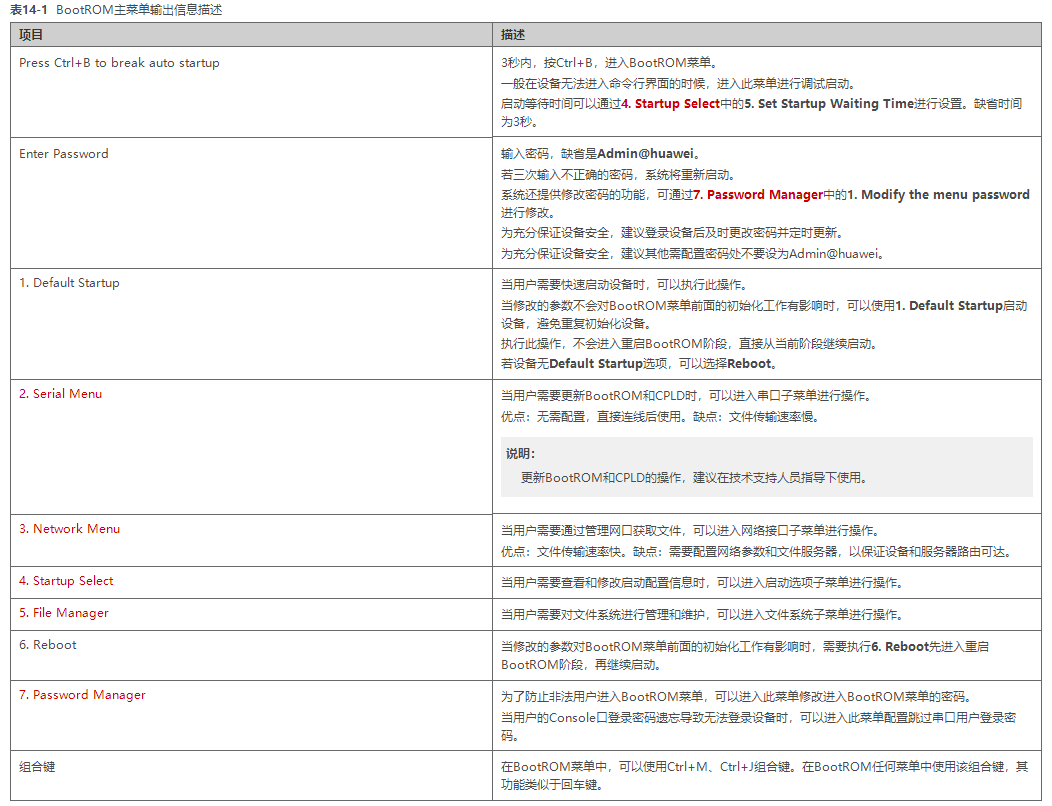 · 用户的Console口登录密码遗忘导致无法登录设备时,可以通过BootROM菜单配置跳过Console口用户登录密码。