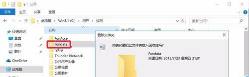 7、然后我们将这里的FUNdata文件夹删除,如果无法删除,我们可以用360粉碎机进行粉碎,这样就可以将这个文件夹进行删除。