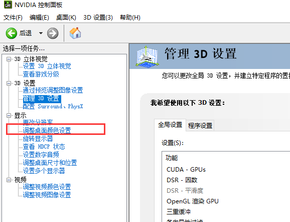 2、打开新窗口后,选择显示下方的调整桌面颜色设置;(电脑维修)