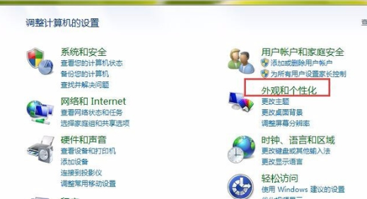 2、点击外观和个性化选项;(网络安全)