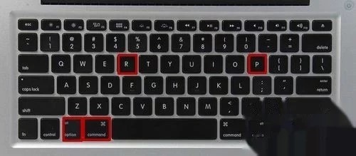 2. 在键盘上找到以下按键:Command (⌘)、Option、P 和 R。您需要在步骤 4 中同时按住这些键。