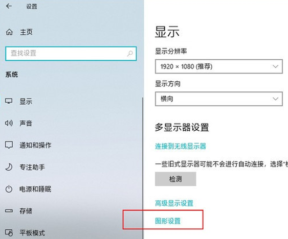 点击“设置”>“系统”>“显示”,将右侧窗格拉到最下,并点击“图形设置”。