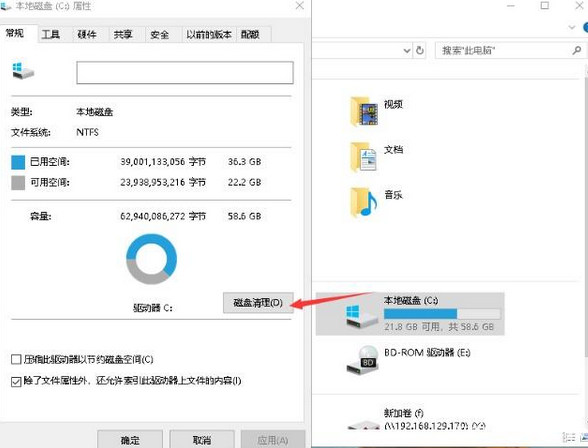 打开我的电脑,在“C盘”上点击鼠标右键,选择属性。然后选择“磁盘清理“