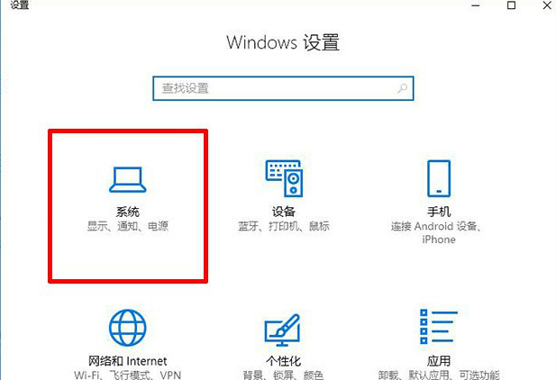 2、我们在Windows设置界面中,我们点击“系统”图标,如下图所示。