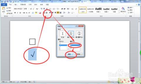 一、 利用带圈数字来实现在方框内打钩,只在Word2003及2007版中适用。
