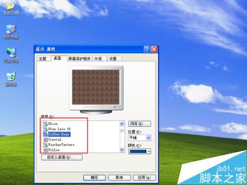 3、在“背景(K)”选择框中选择喜欢的图片,即可看到该图片的预览图;
